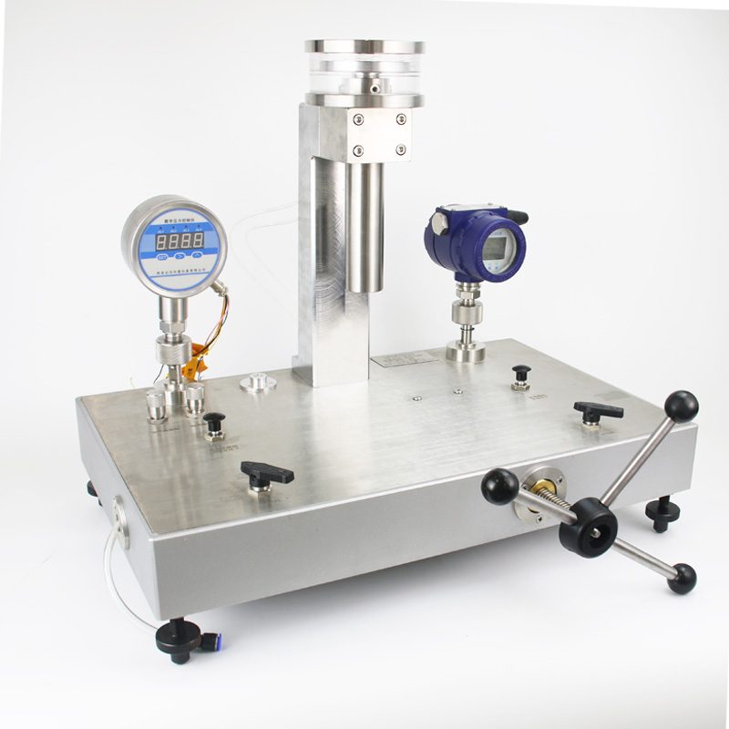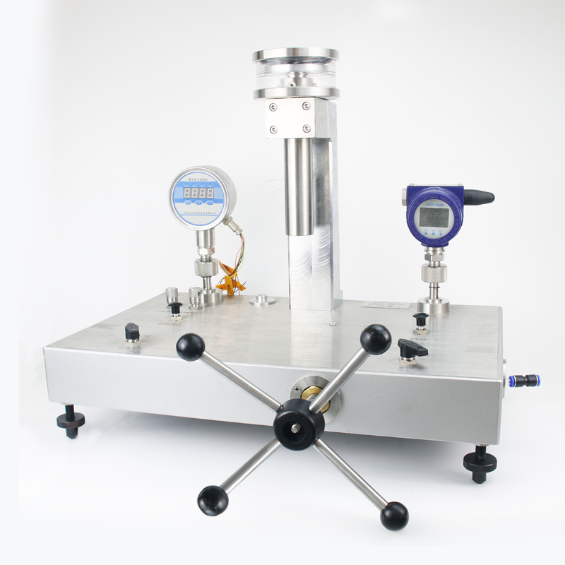 純氣體活塞式壓力計是利用流體靜力平衡(即作用在活塞有效面積積上的流體壓 力與其所負荷的重力相平衡)原理進行壓力測量的計量器具。氣體活塞式壓力計是高準確度壓力標準器,用氣體做工作介質(zhì),可 測量和校準表壓、絕壓、真空壓力負壓)等。活塞式壓力計的活塞桿材料是碳化 鎢,活塞筒材料是碳化鎢,從而保證了活塞具有不銹、耐磨和穩(wěn)定使用壽命長的特點。氣體活塞式壓力計相比液體活塞式壓力計,由于它們使用的工作介質(zhì),所以 氣體活塞式壓力計延續(xù)時間、靈敏度高、重復性好,測量數(shù)據(jù)準確可靠。