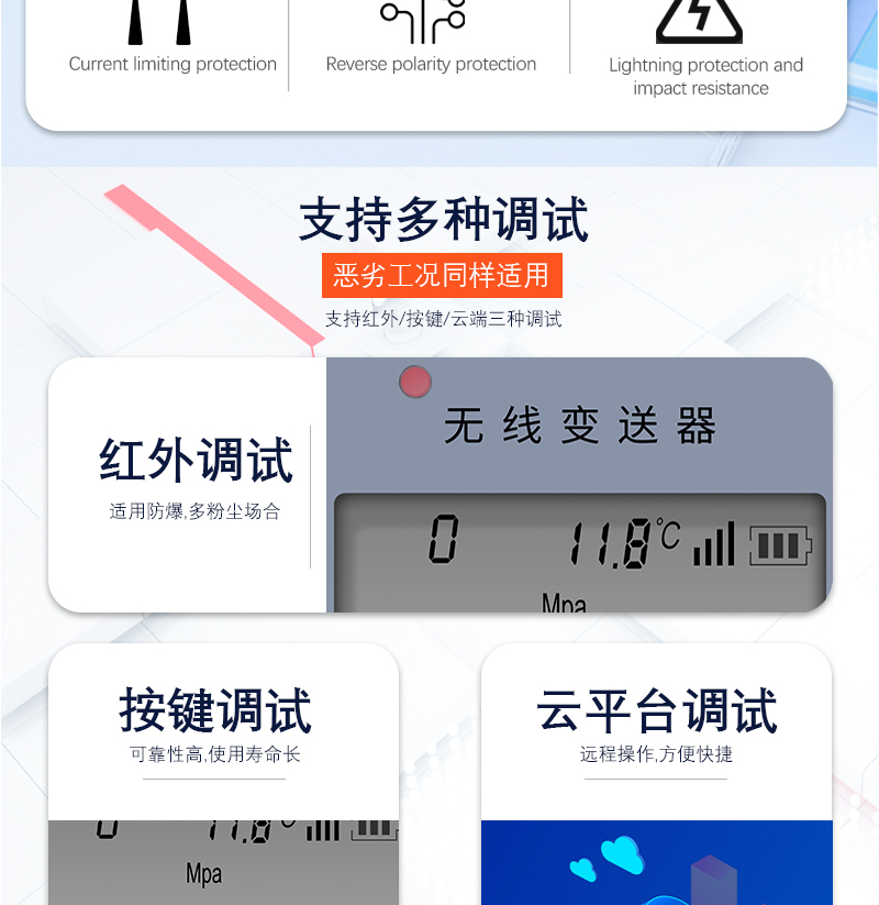 基于CAT1技術(shù)的無(wú)線雷達(dá)液位計(jì),顛覆了傳統(tǒng)雷達(dá)水位計(jì)的結(jié)構(gòu),采用一體化結(jié)構(gòu),內(nèi)置高容量工業(yè)鋰電池,可定時(shí)通過(guò)TCP透?jìng)髦聊繕?biāo)服務(wù)器,也可報(bào)警時(shí)觸發(fā)上傳,主要應(yīng)用在河道液位測(cè)量,泥石流檢測(cè),污水管網(wǎng),山洪預(yù)警等領(lǐng)域