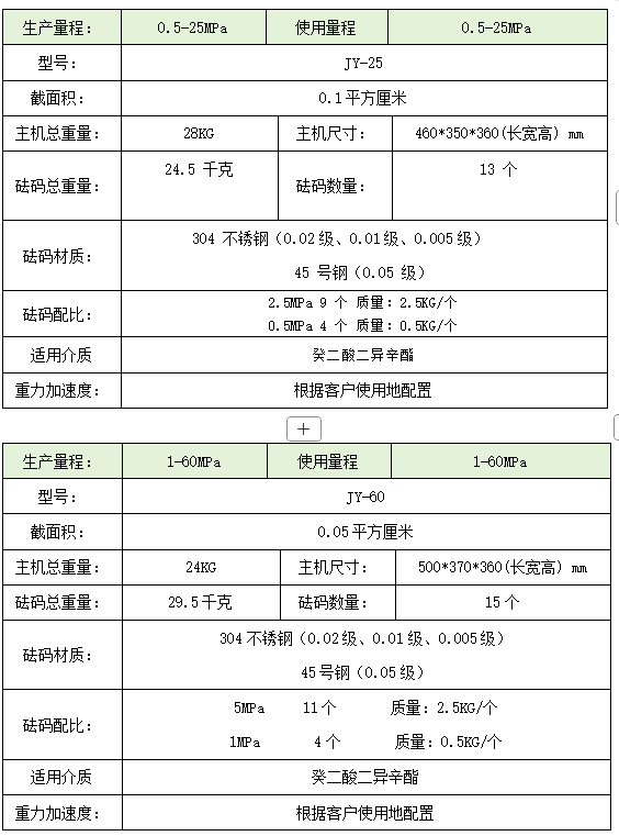 型號:YUNYI7600 量程:1-60MPa 精度:0.005% 最小砝碼(含底盤)1MPa