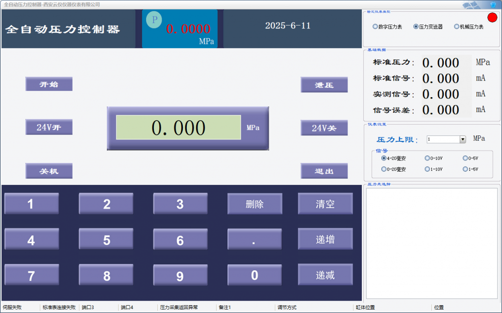 升降速率:單位 hpa/min ,可根據(jù)規(guī)程要求,控制升降壓速率