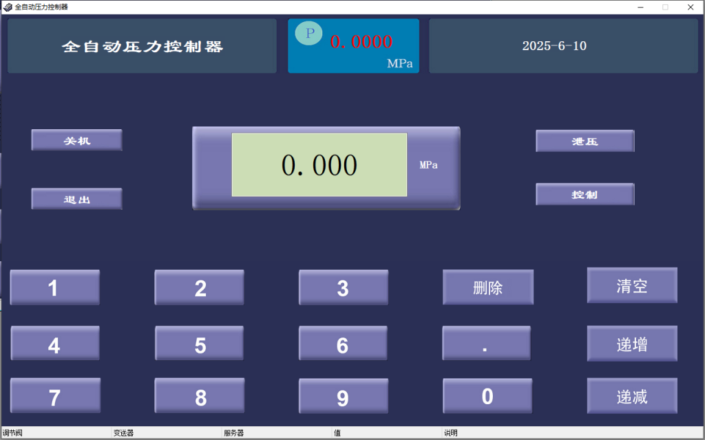配備 10.1 寸高清觸控屏,觸控響應靈敏,操作流程流暢順滑。圖形化界面設(shè)計簡潔直觀,可實時展示設(shè)備運行狀態(tài)、壓力數(shù)值、活塞位移等核心數(shù)據(jù)。用戶僅需在屏幕上輸入目標壓力值,系統(tǒng)便自動完成壓力精準調(diào)節(jié),無需復雜設(shè)置,極大降低操作門檻,顯著提升工作效率。?
